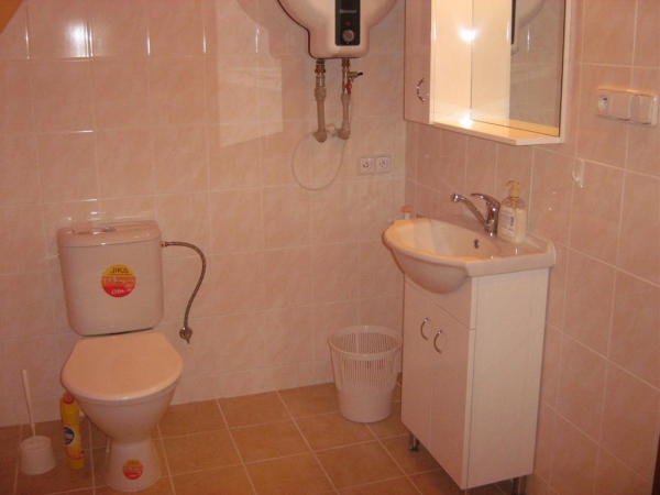 Dvě ložnice (3 + 3 lůžka), kuchyně (jídelní stůl, kuchyňská linka s lednicí, rychlovarnou konvicí a mikrovlnnou troubou), koupelna, šatna, TV+satelit