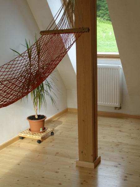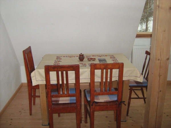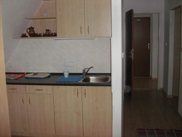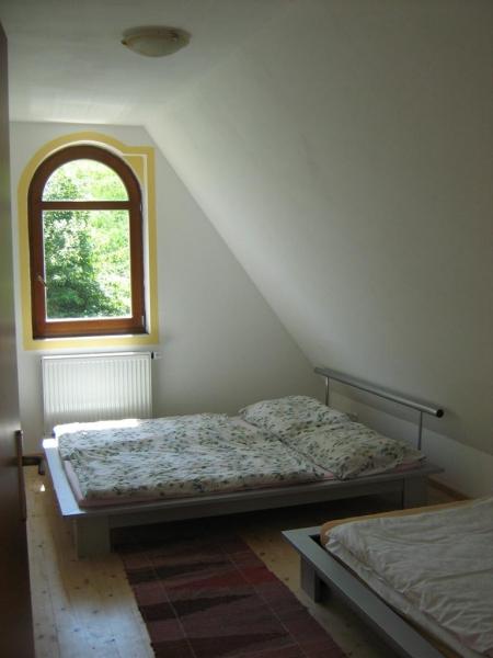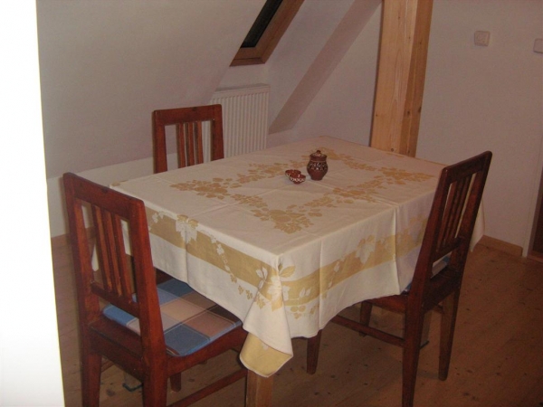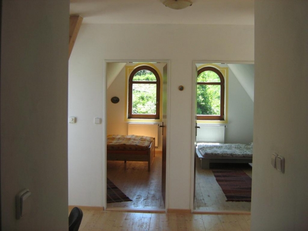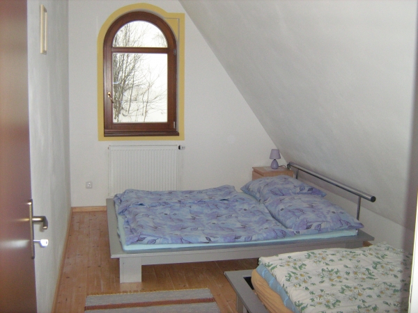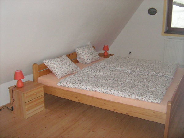 Dvě ložnice (3 + 3 lůžka), kuchyně (jídelní stůl, kuchyňská linka s lednicí, rychlovarnou konvicí a mikrovlnnou troubou), koupelna, šatna, TV+satelit
